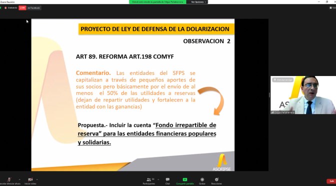 Esté martes 6 de abril la comisión de Régimen Económico recepto las observaciones al Proyecto de Reformas al Código Monetario y Financiero para la Defensa de la Dolarización, desde Asobanca y la Organización de Integración del Sector Financiero, Popular y Solidario en apoyo a la propuesta del Ejecutivo.