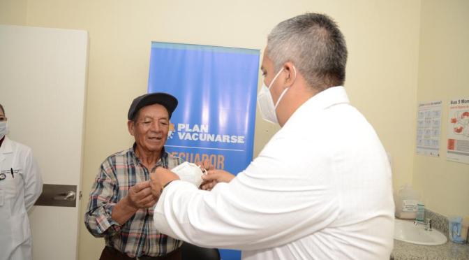 Mientras tanto, en Mira, provincia del Carchi, fue inoculado Edison Calderón de 37 años, con discapacidad física. “Me siento agradecido porque me pusieron mi primera dosis, la atención fue excelente y rápida”, dijo.
