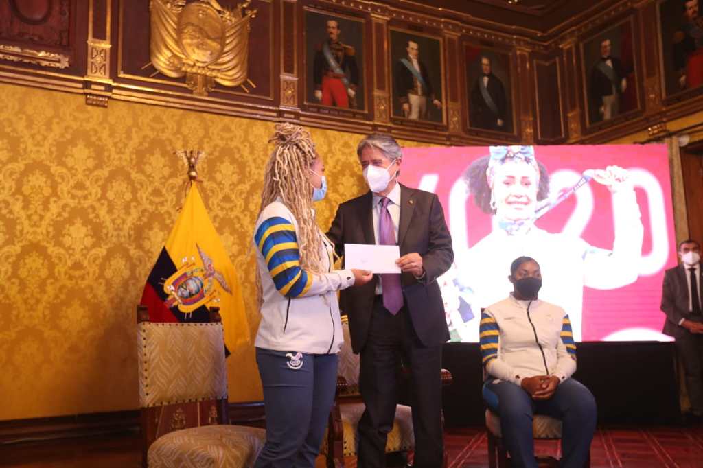 Por su parte, el presidente Guillermo Lasso entregó los incentivos económicos a los deportistas.