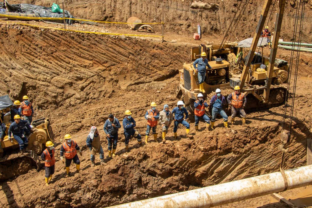 En la fase final, más de 200 técnicos de EP Petroecuador y del Cuerpo de Ingenieros del Ejército, ejecutaron trabajos de alta complejidad bajo estándares internacionales para realizar la construcción de la tubería de 6 pulgadas de diámetro (similar al diseño mecánico original), en el tramo afectado por el fenómeno de erosión regresiva y lateral.
