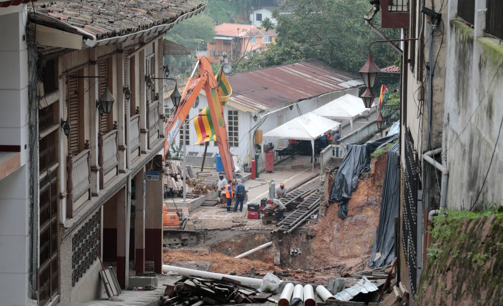 De su lado, el viceministro de Minas, Xavier Vera, señaló que, parte del cronograma de trabajo en la zona, se ha desarrollado los estudios y el diseño para la estabilización del socavón en la superficie, la construcción del sostenimiento, los estudios y diseño de solución en el subsuelo y el relleno para la estabilidad.