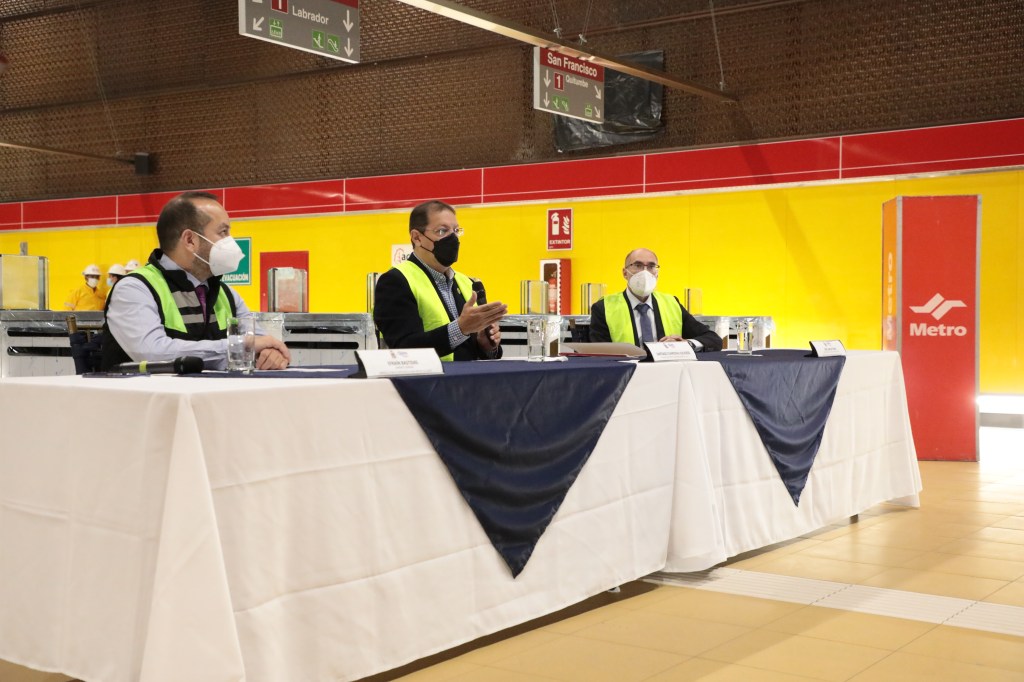 El alcalde de Quito, Santiago Guarderas volvió a insistir que el sistema de transporte del Metro iniciará sus operaciones en el último trimestre del 2022, en el recorrido desde la estación Magdalena hasta San Francisco del bulevar de la 24 de Mayo, recibió los parámetros técnicos específicos para la explotación, operación y mantenimiento realizado por el estructurador técnico del consorcio de expertos internacionales