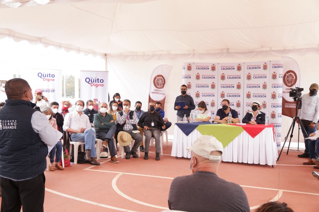 El alcalde de Quito, Santiago Guarderas, junto a varias autoridades municipales esté fin de semana entregó obras e intervino en la mesa de trabajo con los moradores de Llano Grande, de la parroquia de Calderón.