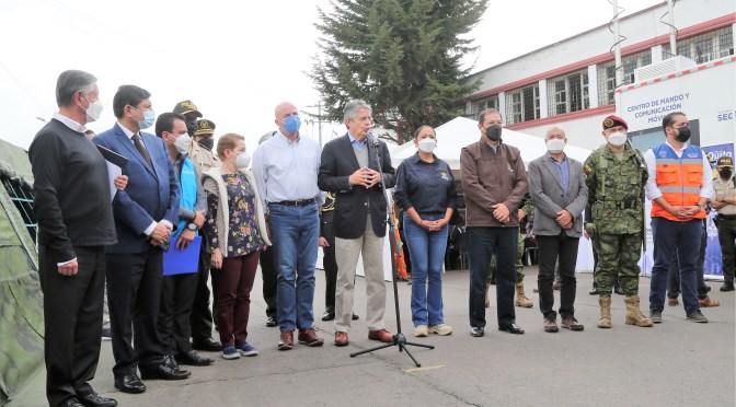 Por lo que, Lasso indicó que inmediatamente ocurrido el evento, dispuso a todas las entidades gubernamentales ejecutar las acciones necesarias para apoyar al Municipio de Quito, las entidades como: el Servicio Nacional de Gestión de Riesgos y Emergencias, Policía Nacional, Fuerzas Armadas y los ministerios de Salud Pública, Inclusión Económica y Social, Transporte y Obras Públicas, Desarrollo Urbano y Vivienda, desplegaron todo su contingente para atender la emergencia.