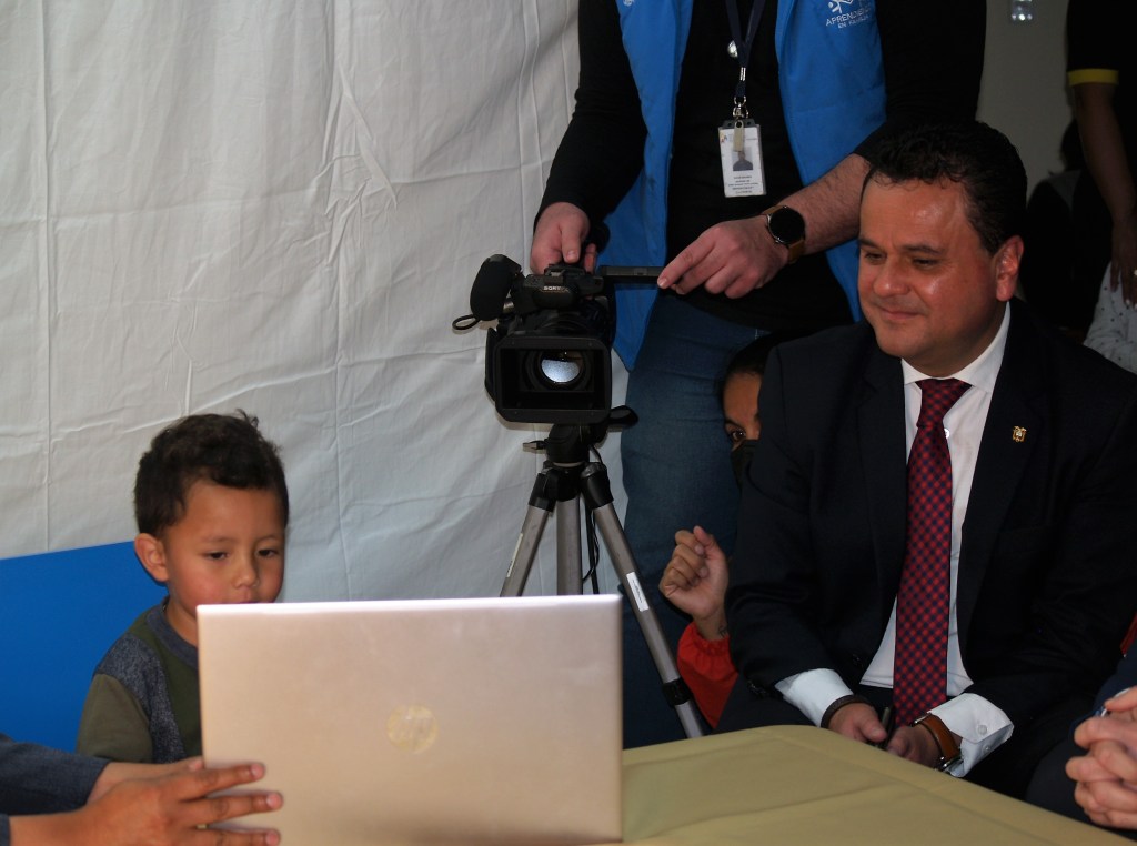 El ministro de Inclusión Económica y Social, Esteban Bernal realizó una demostración del funcionamiento del sistema para los usuarios del centro infantil.