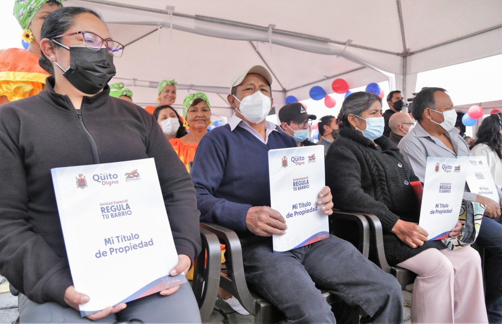 Por su parte, el alcalde de Quito, Santiago Guarderas reiteró el compromiso del municipio “para mí es un verdadero privilegio ser testigo y compartir con ustedes este momento tan importante y anhelado por todos ustedes. Yo creo que es un día de fiesta han esperado más de 50 años para cumplir con su sueño de tener los documentos que les acreditan como los legítimos dueños de su terreno”.