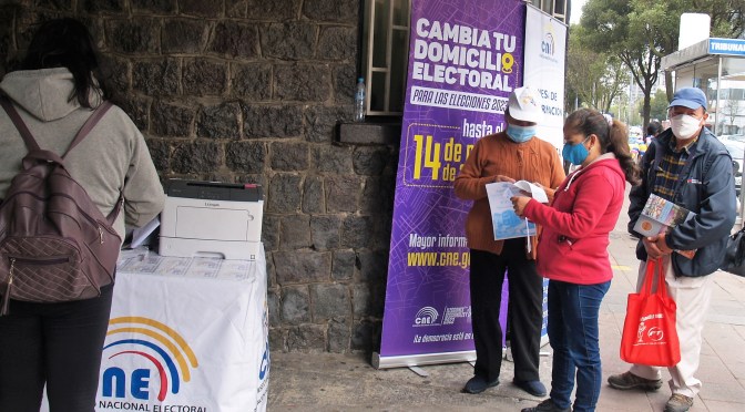 El Consejo Nacional Electoral informó que hasta las 17h00 de este sábado 14 de mayo, la ciudadanía podrá solicitar el cambio de domicilio electoral, habilitación del Registro Electoral pasivo e inscripción de extranjeros en el registro electoral en las 24 delegaciones provinciales, en las brigadas móviles y fijas ubicadas en todo el país y en la modalidad en línea a través de la página web www.cne.gob.ec.