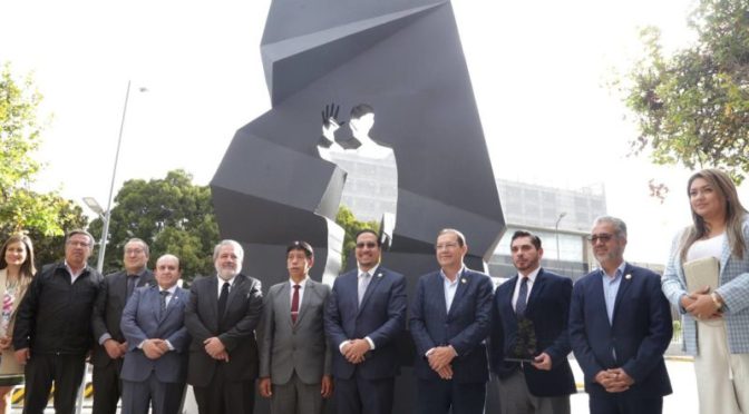 La escultura fue elaborada por el arquitecto Fernando Rivera, quien en la obra evoca poner un alto a este flagelo, que ha sido denominado como el cáncer de nuestros tiempos, dijo el alcalde.