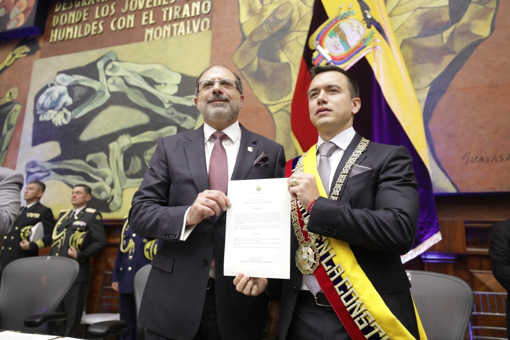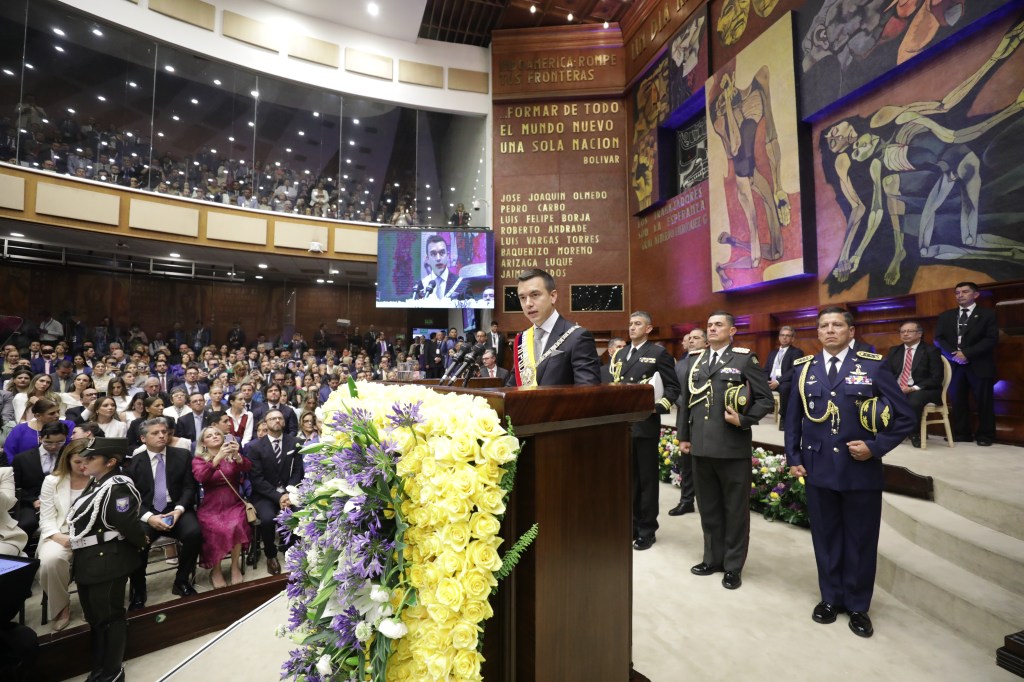 Con la presencia de cerca de 1.500 invitados, el presidente de Colombia, Gustavo Petro; los vicepresidente de Brasil y Honduras; el expresidente de Colombia, Andrés Pastrana; delegaciones de países amigos; cuerpo diplomático; asambleístas y los titulares de las otras funciones del Estado, el presidente de la República, Daniel Noboa Azin y la vicepresidenta, Verónica Abad, asumieron sus cargos ante la Asamblea Nacional, para el período 2023-2025.