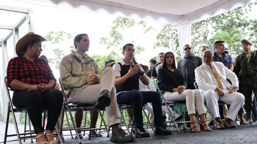 Los habitantes de Esmeraldas, Santo Domingo de los Tsáchilas y Pichincha se beneficiarán del puente Delta sobre el Río Blanco. Este miércoles 27 de diciembre 2023, el presidente de la República, Daniel Noboa, entregó la obra esperada por estas provincias, “algo en lo que se diferencia mi gobierno de los anteriores es que no se apodera de las ideas, las ejecuta. Esa es la diferencia: tener la empatía y la fuerza de ejecutar obras que benefician a los ecuatorianos”, dijo.